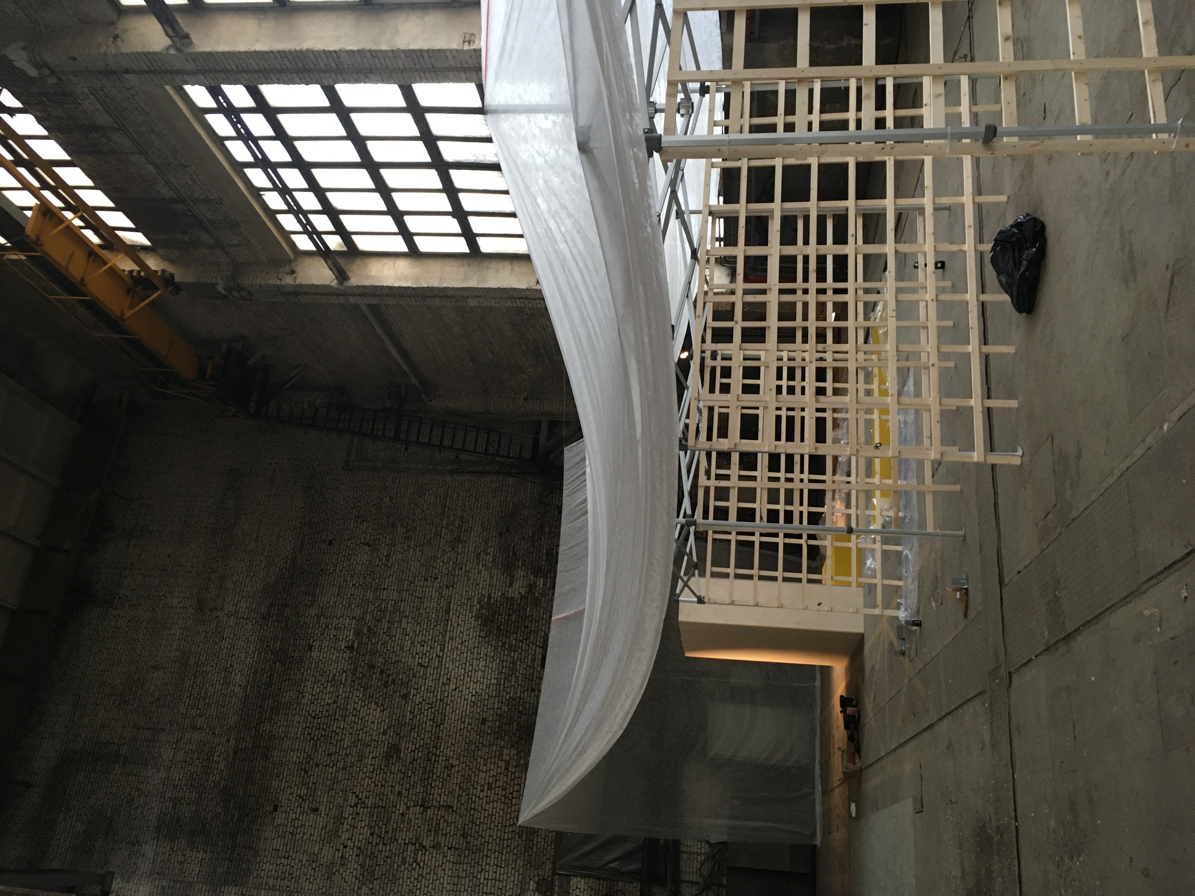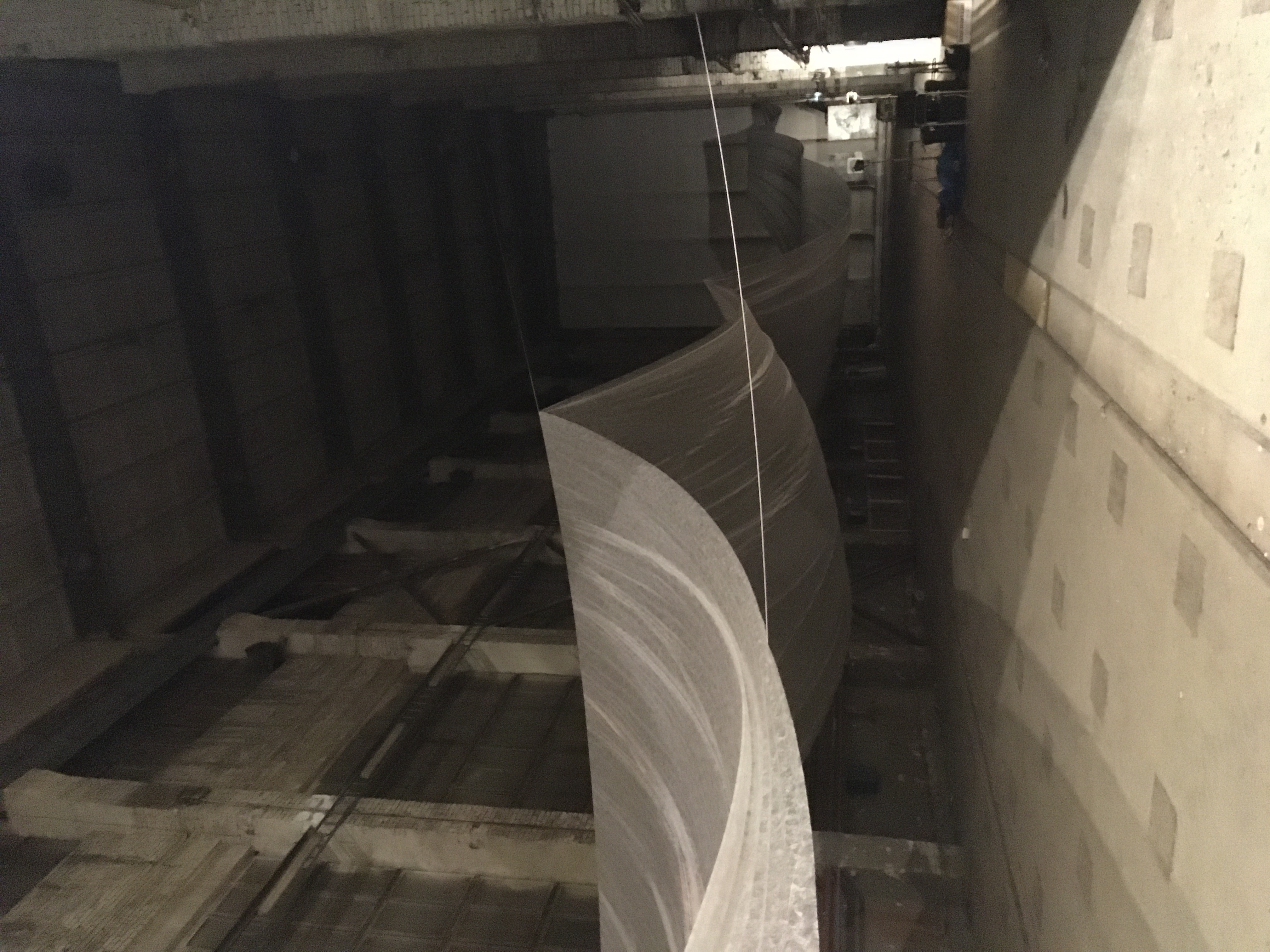 a merging element between all the exhibition spaces in an 12m high shipyard building also did the practical job as a projection screens